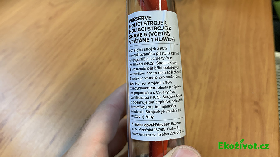Ty, jimž záleží na přírodě, potěší i to, že zvlhčovací proužek obsahuje pouze přírodní suroviny v podobě kokosového másla a aloe vera. Při jeho výrobě nebyly použity žádné živočišné suroviny. Holicí strojek je tak vhodný i pro vegany.