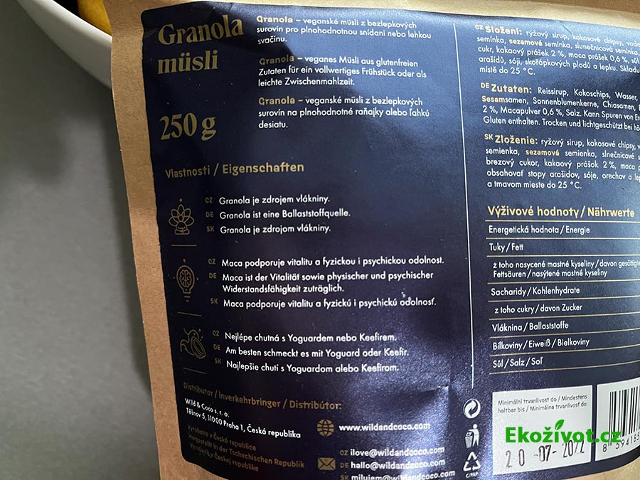 Hotová vydrží až několik týdnů, a to i ta, která neobsahuje žádné konzervanty. V Crunchy Granola Coconut & Cacao nenajdete žádná syntetická aditiva, ale nejen to, všechny suroviny jsou navíc v bio kvalitě. A nejen tím si mě právě získala – ta chuť mi rozhodně učarovala.