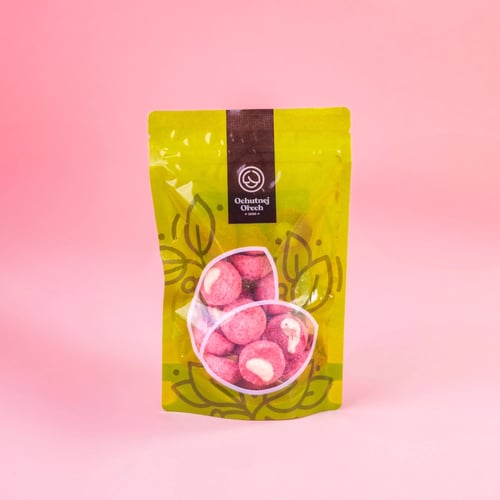 Kombinace jemně nasládlých kešu a svěžího doteku jahody v podobě křupavého kopečku připomene letní dezert. Skvělá volba, když chcete drobnou odměnu během dne, originální pohoštění pro hosty i netradiční zpestření domácí pohody.
